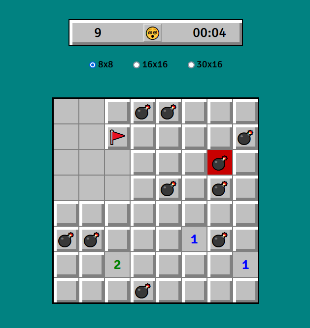 rote Fahne als Markierung. Decke alle Spielfelder auf, ohne eine Bombe zu aktivieren, um das Spiel zu